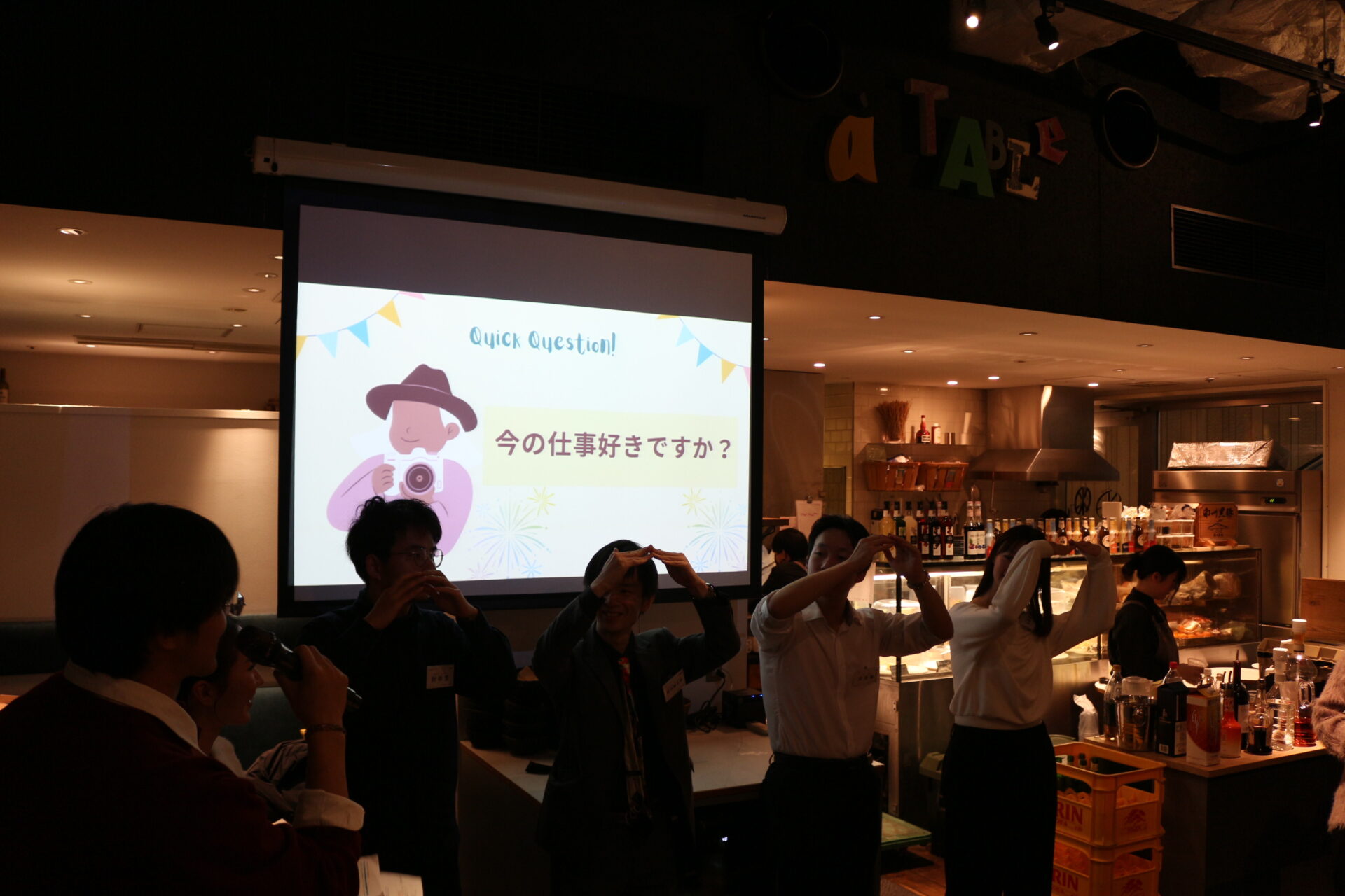 会の冒頭では乾杯の挨拶と教員・TAの紹介を行い、その後は食事を楽しみながら、卒業生同士で自由に交流する時間となりました。会場では思い出ビデオの上映も行われ、これまでの活動を振り返りながら、笑顔あふれるひとときとなりました。